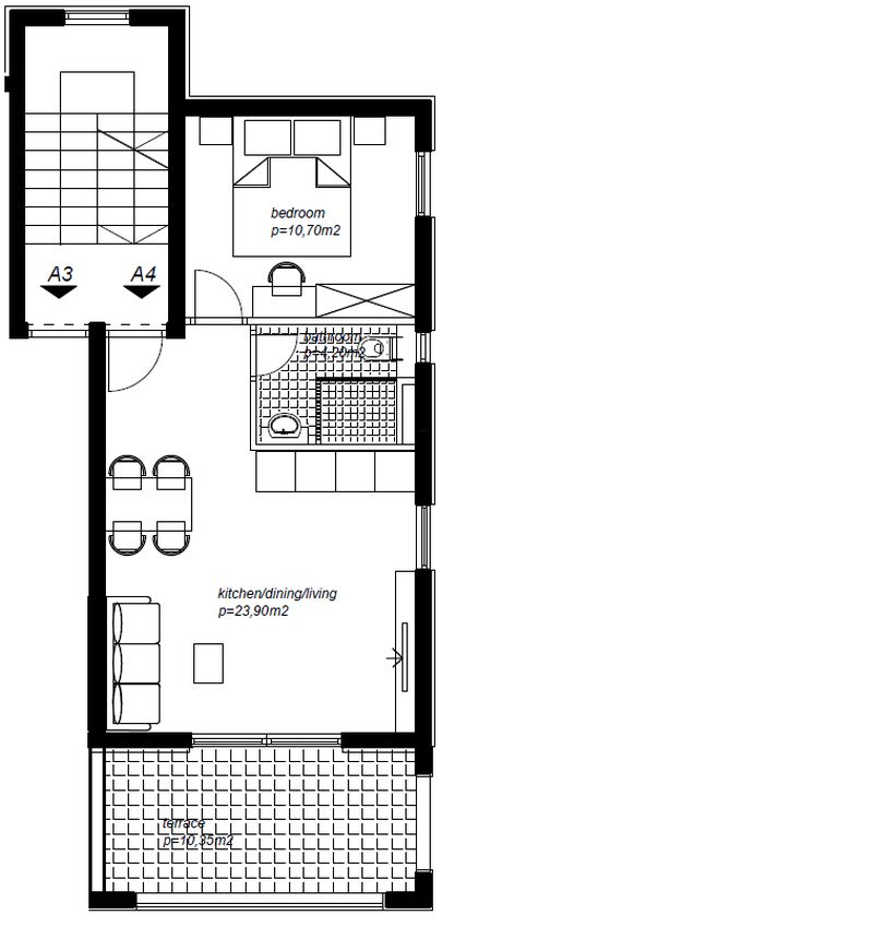 If you prefer terrace, you have table with comfortable chairs to enjoy the meal, coffee or just a view. Bedroom has a comfortable double bed, wardrobe, table and chair. Whole apartment has 49,15m2. Parking is in the garage (basement), included in the price. Unfortunately, at this time we do not allow pets in apartments. All apartments are NON-smoking.